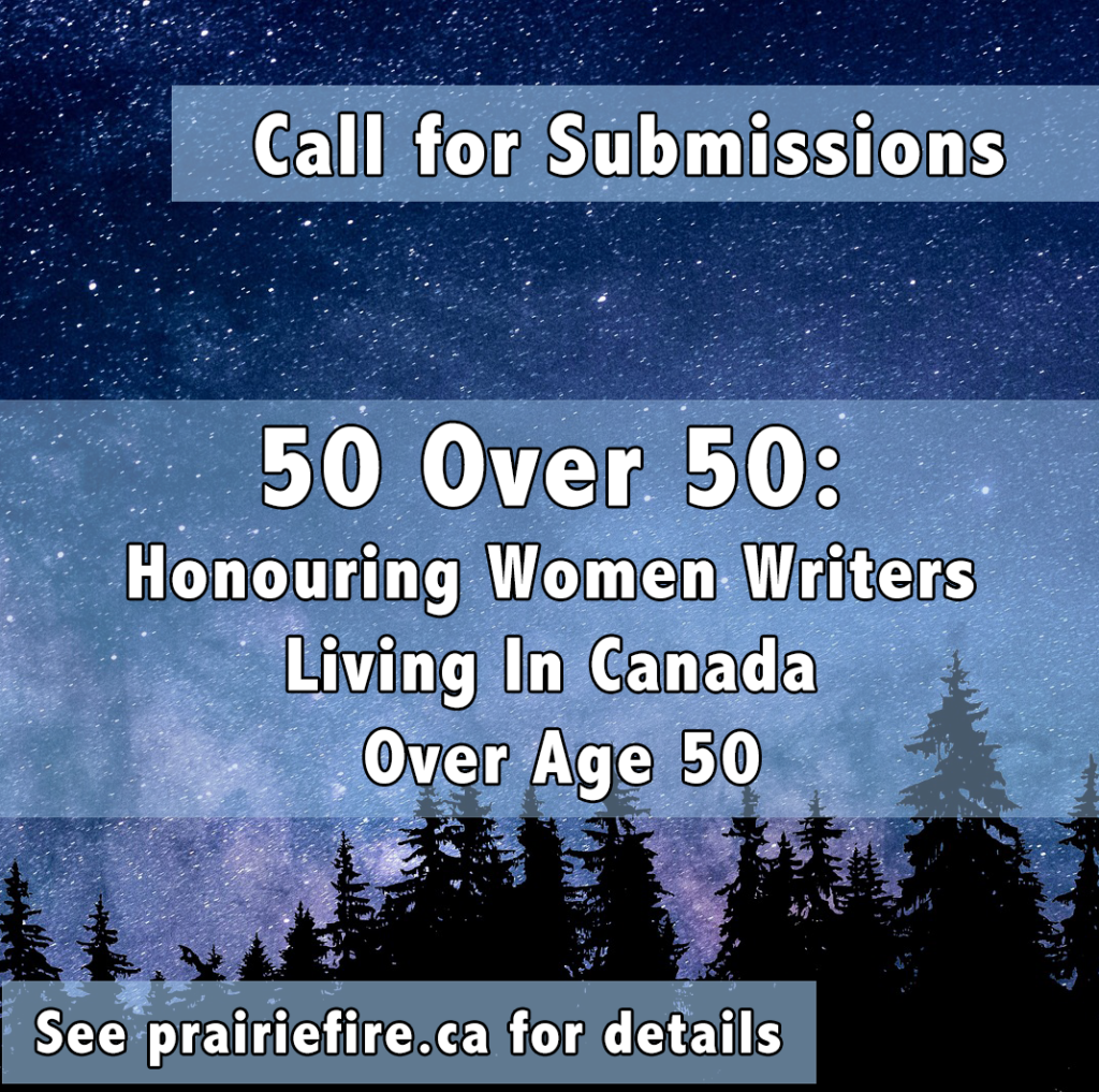 Prairie Fire is giving centre stage to women writers over fifty! This special issue is a celebration that honours and recognizes the enormous contribution of living Canadian women writers, who have helped shape CanLit and continue to do so. If you are a woman, aged fifty and over, have at least one published piece of writing […]