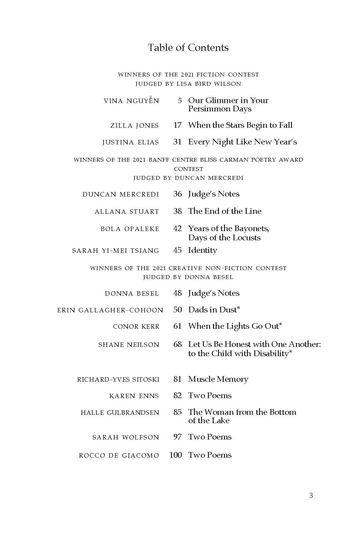 Our annual contest issue! Check out the winners of our 2021 writing contests, as well as new work from Kat Cameron, Rocco de Giacomo, Richard-Yves Sitoski & more!