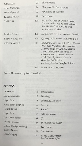 Work by John Barlow, Méira, Anne Le Dressay & more! Also, SPARKS! A section of writers in high school (circa 1992).