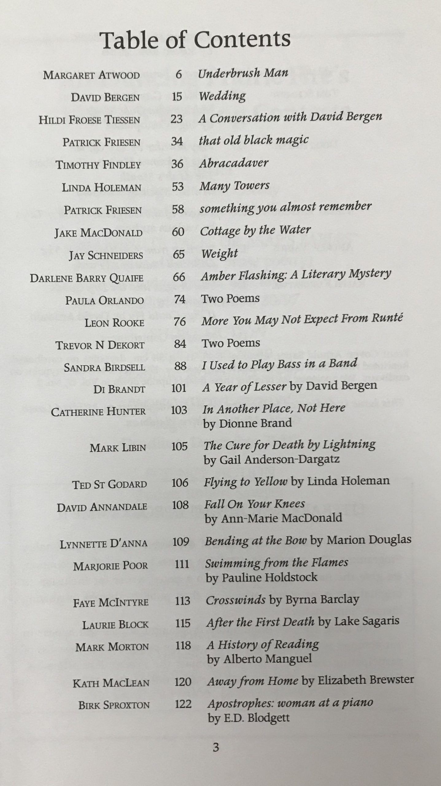 Work by Margaret Atwood, David Bergen, Sandra Birdsell & more!