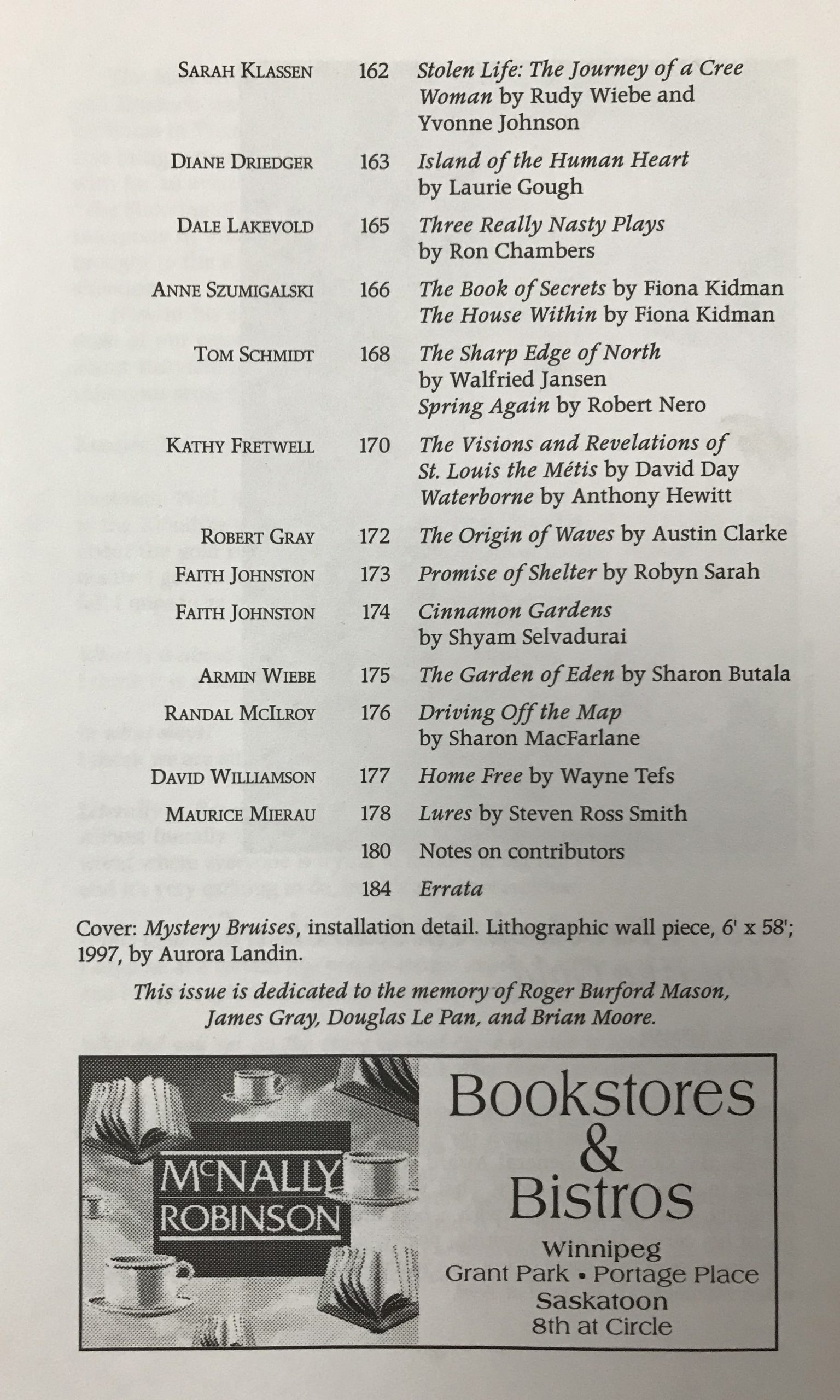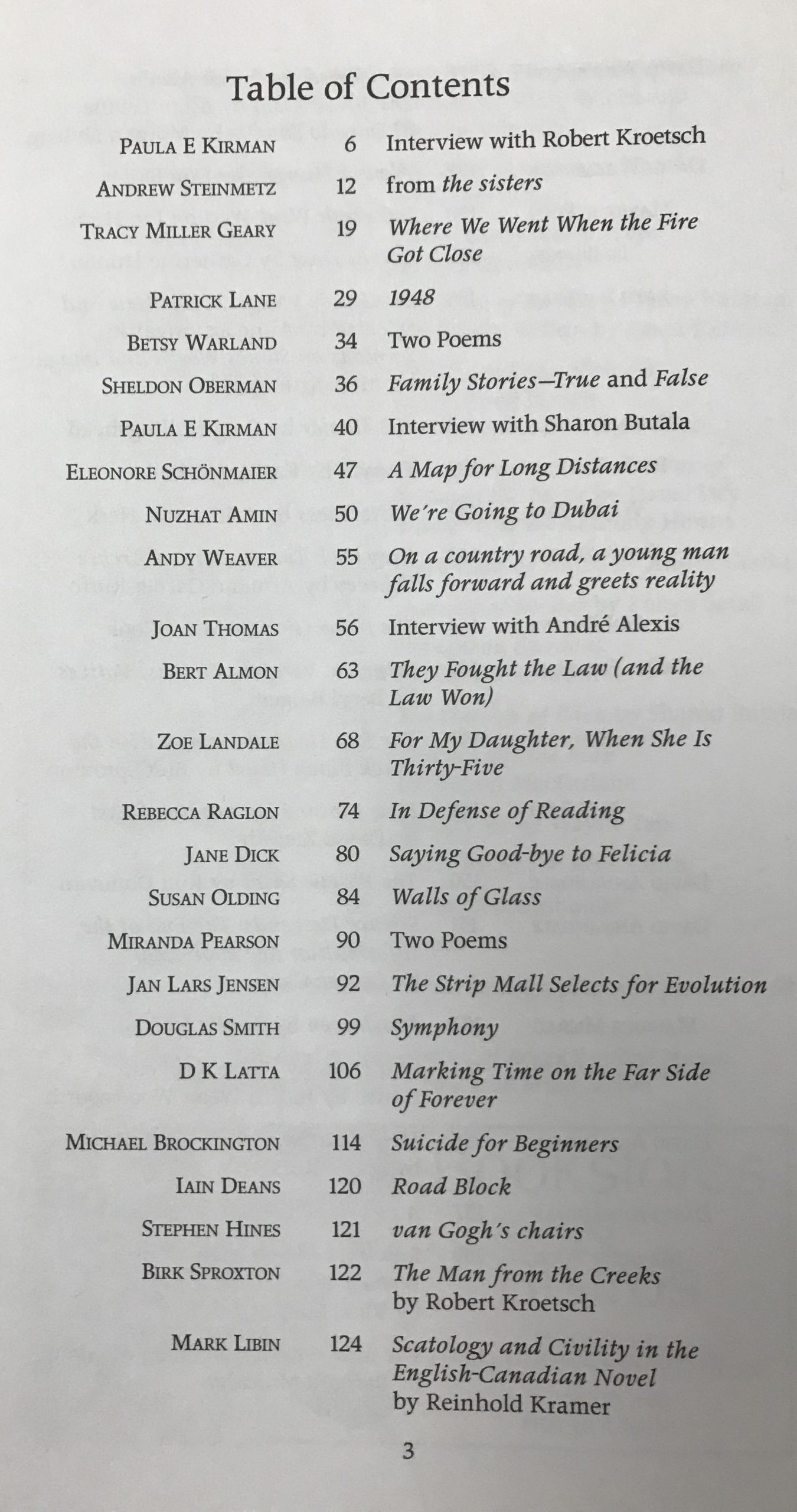 Featuring interviews with Robert Kroetsch, André Alexis, and Sharon Butala, along with new works by Patrick Lane, Betsy Warland, Susan Olding & many, many more!