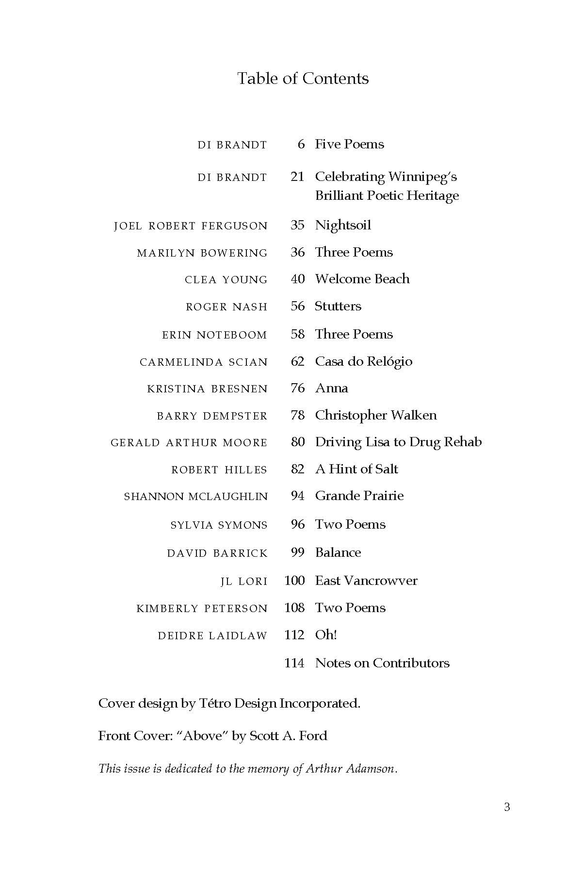 Poems by Winnipeg’s Inaugural Poet Laureate, Di Brandt! Also, new works by Robert Hilles, Marilyn Bowering, JL Lori & more!