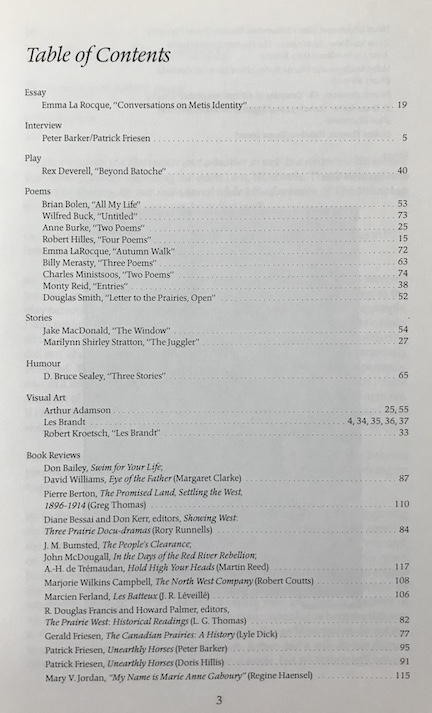 Interview with Patrick Friesen, Emma LaRocque: Conversations on Métis Identity, stories by Jake MacDonald and Marilyn Stratton & more!
